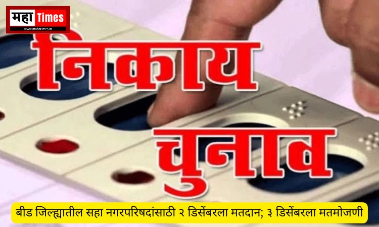 बीड : राज्य निवडणूक आयोगाने जाहीर केलेल्या कार्यक्रमानुसार बीड, गेवराई, माजलगाव, धारूर, परळी व अंबाजोगाई या सहा नगरपरिषदांच्या सार्वत्रिक निवडणुकांसाठी येत्या २ डिसेंबर रोजी सकाळी ७.३० ते सायं. ५.३० या वेळेत मतदान होणार आहे. तर ३ डिसेंबर रोजी सकाळी १० वाजता मतमोजणीला सुरुवात होईल.